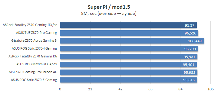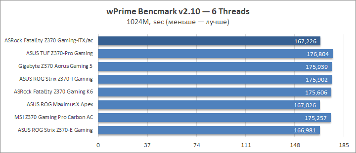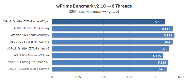 Высокое значение частоты процессора позволило уйти в отрыв от основной части плат в wPrime.