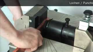 Регулируемый по высоте рабочий стол с боковым упором облегчает работу. Не требуется делать разметку и замеры. Могут быть пробиты отверстия диаметром от 6,5 до 21,0 мм.