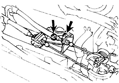 а) Отсоедините тросы управления от тяги дроссельной заслонки.